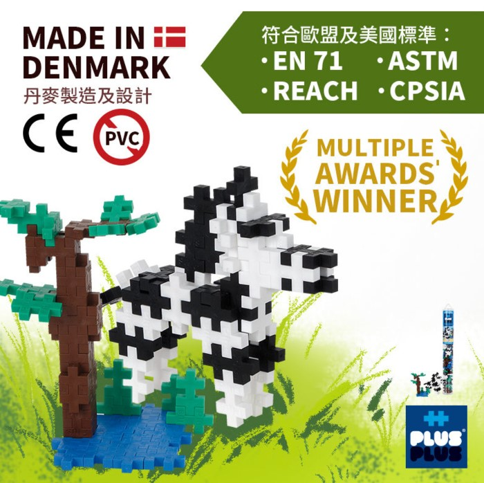 Plus-Plus - 100粒 形象化斑馬試管裝Mini plus + 教學拼圖框架指南