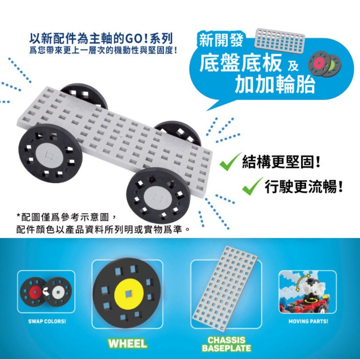 本產品為GO!主題盒系列,内裏附有適合最新配件的拼砌説明書,並按照教學拼砌款式配好相應的粒子)。圖片上包裝盒/包裝容器跟產品的比例未必與實物比例一樣, 圖片上產品顏色只供參考一切以實物為準